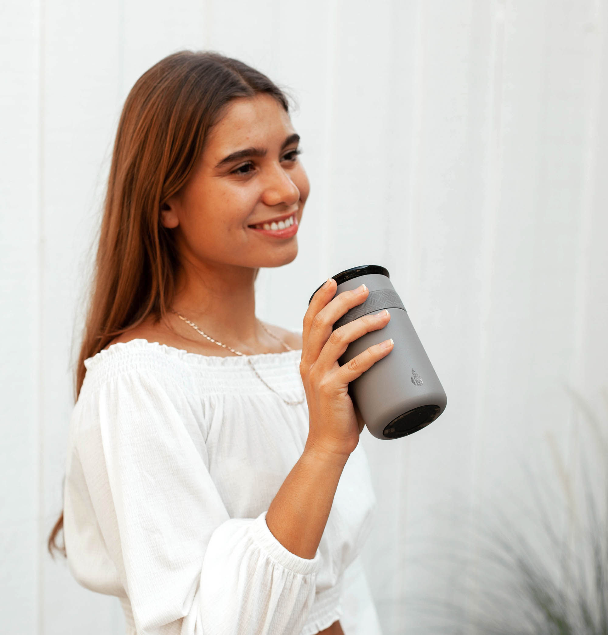 Bad coffee is better than no coffee. But great coffee in an Artisan Tumbler, complete with hand glazed ceramic lid? Time to conquer the world. Now you can enjoy that at-home-coffee or tea experience, even on the go. The world’s first completely ceramic lid travel tumbler with swiveling stopper helps reduce spills and is cup holder compatible. Non-slip grip band and bottom make spills and slides a thing of the past. Upgrade your mug. Have a smooth sip on us during your morning commute, on chilly days at the soccer game, or running errands. Complies with FDA, Food Grade, Prop 65. 3″ Diameter x 5.75″ H